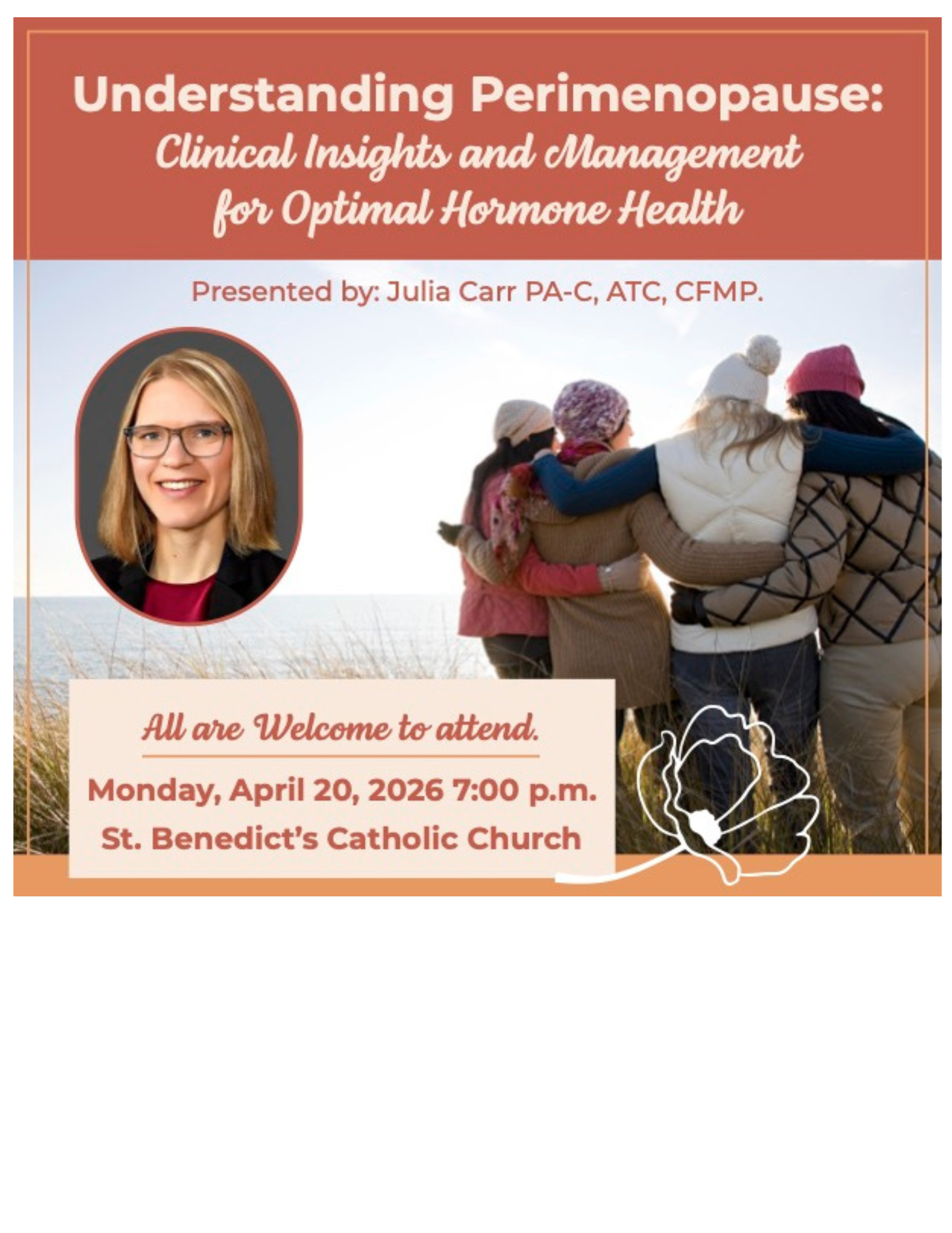Join us for Northland FertilityCare™ 2026 Annual Meeting featuring special guest speaker Julia Carr, PA-C, ATC, CFMP, who will be sharing on perimenopause and women’s hormonal health.